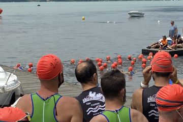 Giornata Calda, Lago Piatto con qualche alga di troppo -:), Muta Vietata anche ai "vecchietti" sigh... Madrina della Gara Justine Mattera... (Manuel e Luca hanno cercato di dargli un po' di brio... :-) )