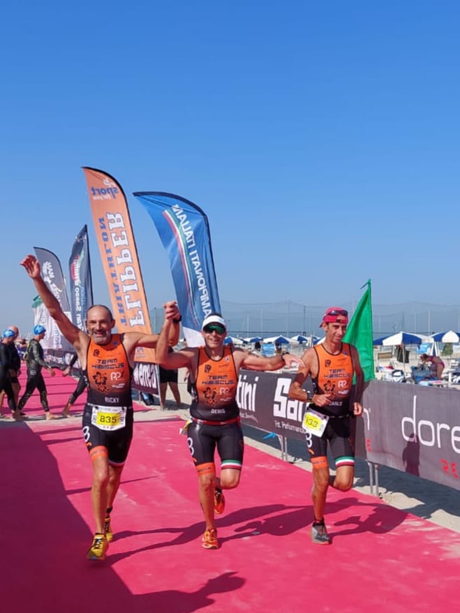 Domenica mattina pronti e decisi a dare il meglio nella gara a squadre Ricky Carlo e Denis concludono al 207° posto battendo di pochi secondi i “cugini” del Triathlon Novara.