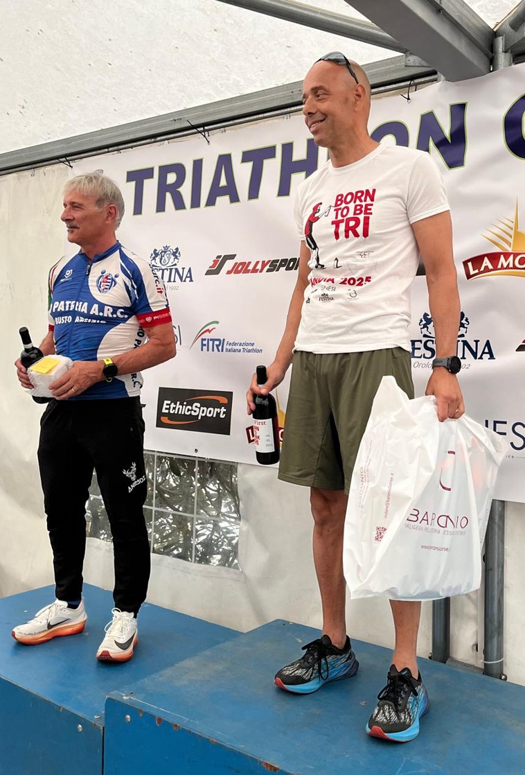 Nell'ordine sulla distanza olimpica a farla da padrone nella categoria M5 l'indomabile Alessandro Gioffrè in ottima forma che conquista il gradino più alto del podio! A seguire tutti finisher Michele Vincon migliore dei nostri nella frazione run, Fabio Ferrarini buona frazione bike, Massimo Massetti tornato in gran spolvero, Santo Fiorenza a mettere il suo sigillo anche in questa gara e infine con grande gioia il rientro dopo 1 anno di stop del nostro Raffaele Parisi!